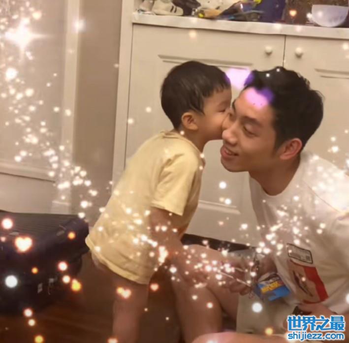奥运冠军许昕送儿子玩具车,不停索吻表爱意,儿子脸蛋圆润眼睛大 ...