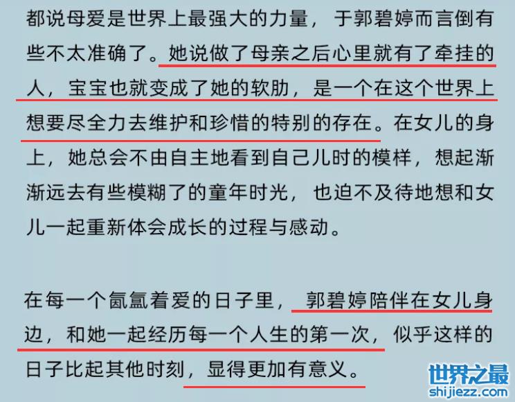 在接受采访中,郭碧婷多次谈到与女儿cora相处的幸福时光,不经意的嘴角上扬和缓缓道来的爱意,都充满了初为人母的喜悦,而她当了妈妈后,并没有因此变得强大,反而身上多了软肋,女儿是她的牵挂,是她在这个世界上,想要尽全力维护和珍惜的特别的存在。