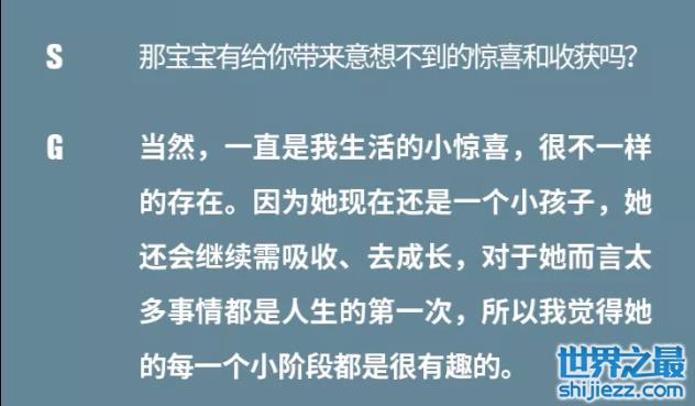 谈到女儿的到来给生活带来了什么意想不到的惊喜和收获,郭碧婷直言女儿还是个小孩子,她会不断吸收然后成长,人生的很多事情都是第一次,所以觉得女儿的每个小阶段都很有趣,也充满了惊喜。
