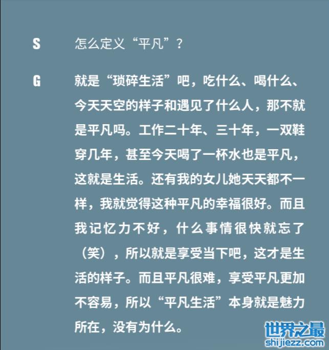 除了这些有关家人与孩子的采访外,郭碧婷还谈到了自己进演艺圈的改变以及关于“平凡的定义”,她认为平凡就是琐碎生活,吃什么、喝什么、遇见了什么人,这就是平凡,还有女儿天天都不一样,这种平凡的幸福很好。而“不要忘记原本的样子”也是她给自己的座右铭,“勿忘初心”,做最真实的自己。