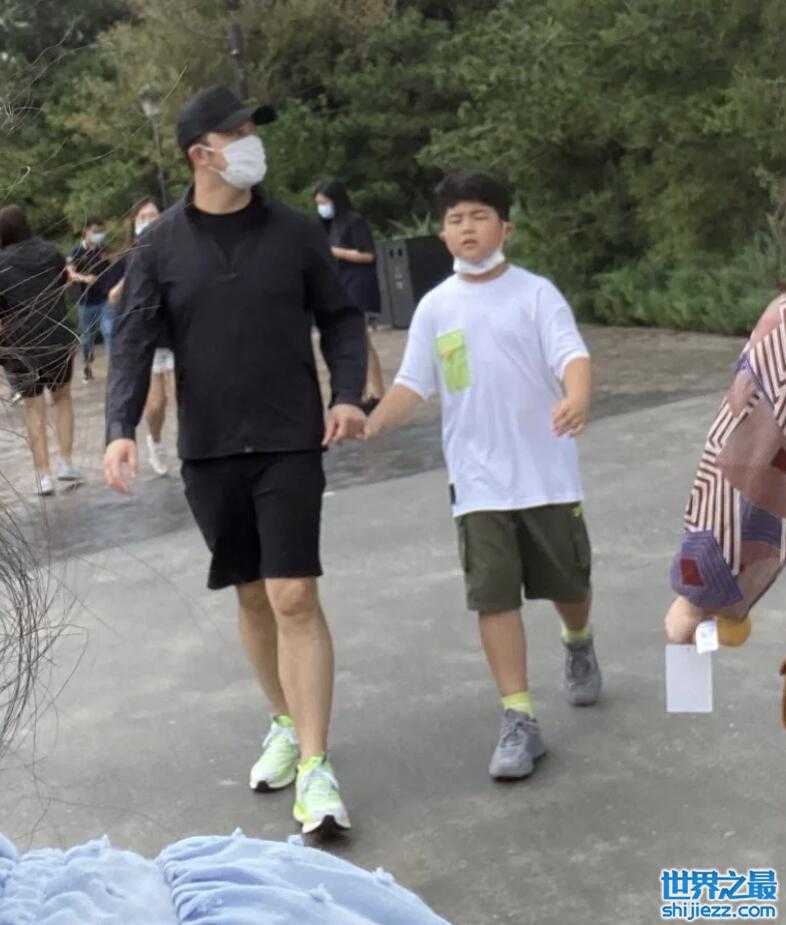 沙溢带大儿子游玩,10岁安吉发福肚腩明显,个头长到爸爸肩膀 ...