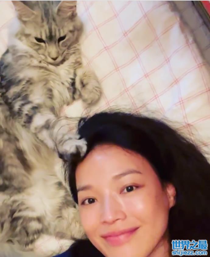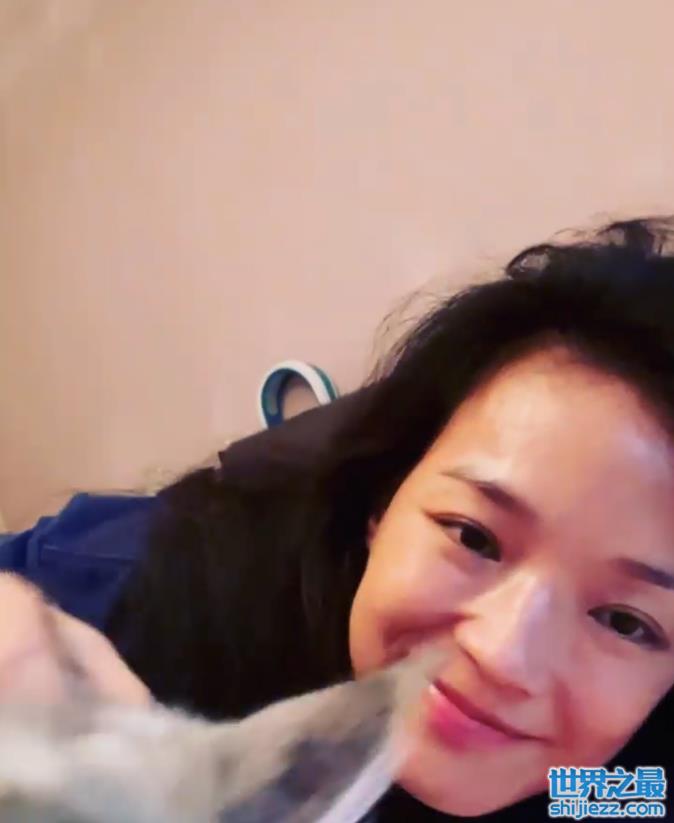 舒淇躺在床上,一直逗着身边的猫咪,不过这只猫显然并不想搭理舒淇,丝毫不配合合影,可谓是一点都不给舒淇面子。