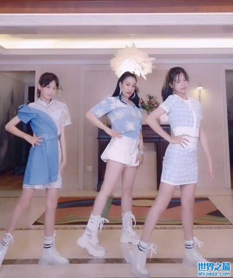 钟丽缇和女儿们跳舞,二女儿思捷身高赶超母亲,全家都是高颜值 ...