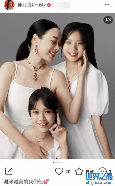 不得不说,钟丽缇和女儿们的颜值很高。其实,除了和钟丽缇一起出现在合照中的两个小女儿之外,钟丽缇还有一个大女儿名叫张敏钧。