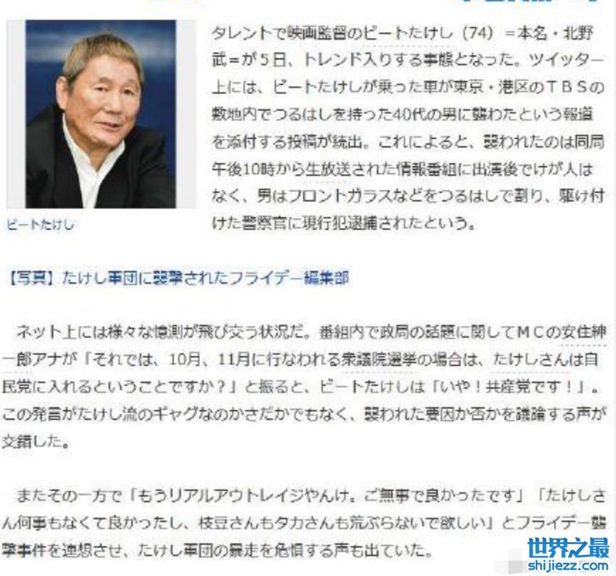 著名导演北野武遭遇袭击,男子拿铁镐敲碎车窗,曾为进娱乐圈下跪 ...