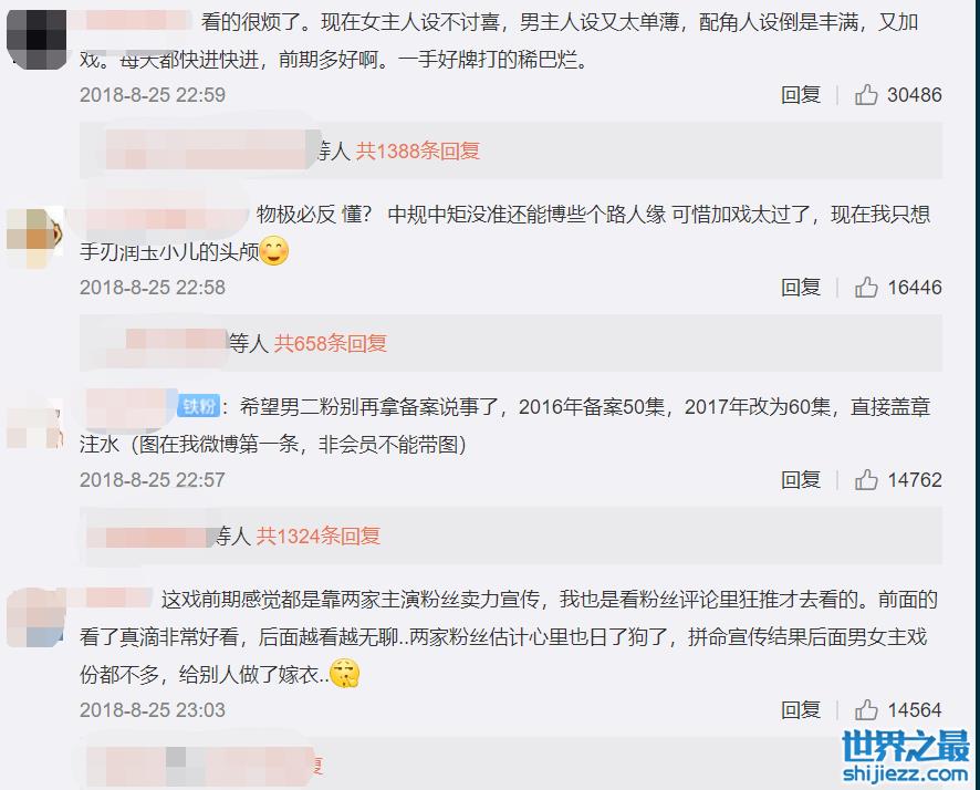 她直呼自己“上当了”,认为电视剧并没有把故事最精彩的地方呈现出来,为此感到十分遗憾。就连曾经大火的《香蜜》也逃不了被注水的命运。编剧张鸾盎承认,签约时36集的剧本,播出后竟变成了63集。因为男二戏份不断增多,引起了男女主粉丝的强烈不满,一度被吐槽为《润玉传》,两家粉丝甚至开始了互撕!