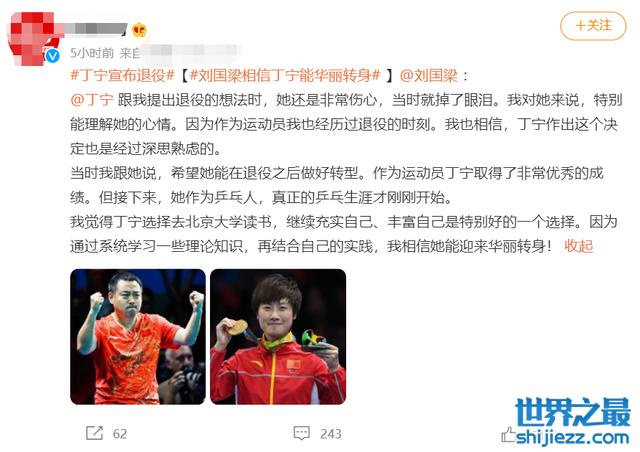 奥运冠军丁宁入学北大,发长文宣布退役,刘国梁张怡宁等人送寄语 ...