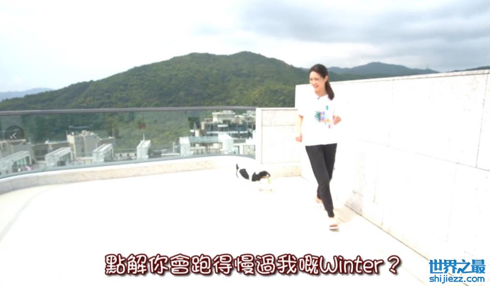 不一会,陈庭欣还与爱犬一起在天台上玩耍,二者一前一后在天台上追逐嬉戏,可见天台的面积广大,即使在上面跑步也不成问题。