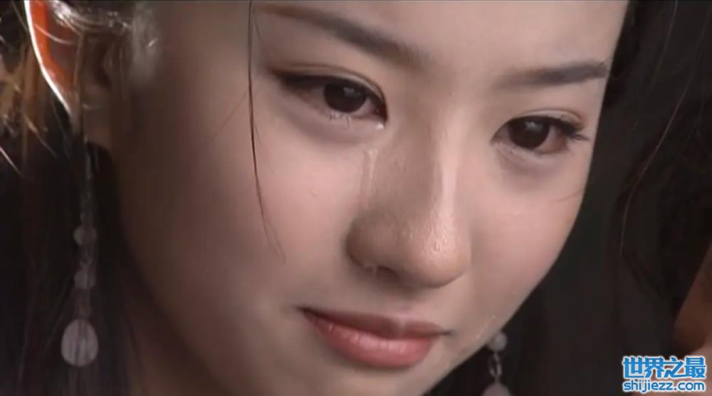 近景也能看到刘亦菲鼻子周围浮粉的情况,以及哭过之后脸上留下的粉底痕迹,不过无伤大雅,在这样真实的镜头中,更能衬出刘亦菲逆天的颜值!