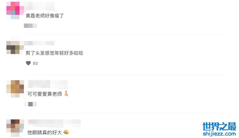 而看到这一画面的网友纷纷被黄磊突然做鬼脸的样子惊呆了,在评论区留言表示黄磊老师真的是可可爱爱,还夸赞黄磊的眼睛大,觉得他剪完头发好像年轻了不少,看起来好像还瘦了。