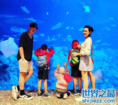 就在不久前,一家人还同游海底世界,在面对蓝色的海水与各种各样的鱼儿时,三个孩子趴在玻璃上目不转睛地观看着,而夫妻二人则面对镜头一脸宠溺的笑着,一家人和谐又美好。