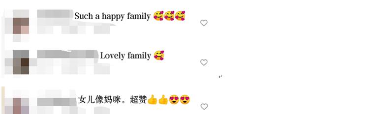 网友们看到这些温馨的照片后,在评论区底下留言表示一家五口真的好幸福呀,一家人看起来有爱极了,小女儿长得好像妈妈,超好看的。