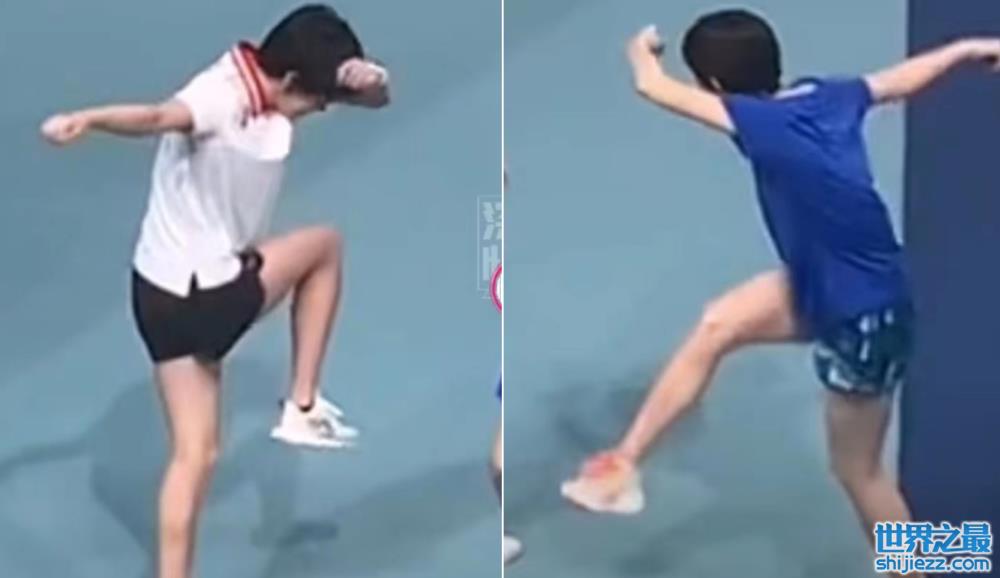 不仅如此,张家齐和陈芋汐还开始模仿许昕打乒乓球的动作,一只手弯曲一只手伸直朝向身后,还不忘抬起一只脚,动作非常标准,看来是没有少看许昕打球的视频,简直是模仿到了精髓。
