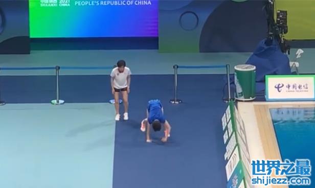 随后,张家齐和陈芋汐两人还是没有玩尽兴,只见张家齐突然趴在地上,开始手脚并用向前行走,中间还不忘加速。应该是被自己的动作逗笑了,做完动作后,张家齐和陈芋汐两人相视一笑,这也给他们在紧张的赛事中增添了一些乐趣。
