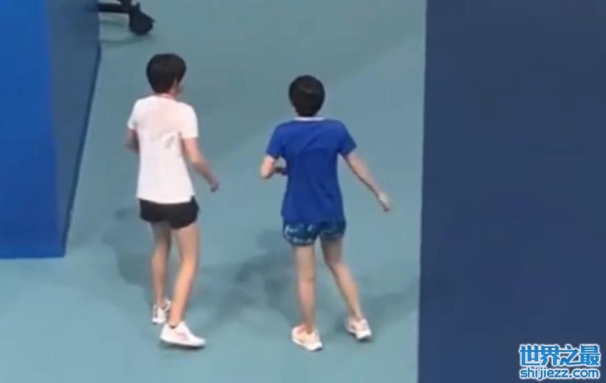 张家齐陈芋汐场馆内玩耍,模仿许昕打球动作标准,手脚并用向前爬 ...