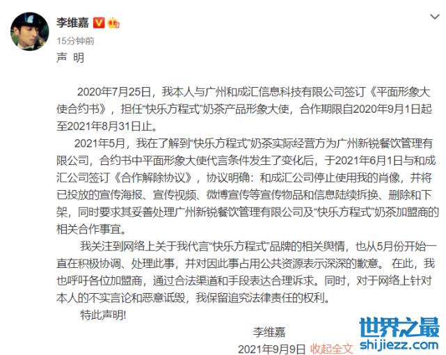 李维嘉回应代言翻车,八月底与奶茶公司已终止合作,撇清自己的责任 ...