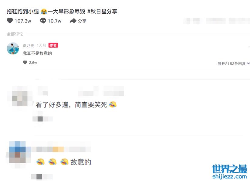 贾乃亮将这段视频发出来时,也配文称大早上的形象尽毁,拖鞋跑到小腿,还配上一个笑哭的表情符号。看到视频的网友们也纷纷在评论区留言表示,看了好几遍这个视频,笑到根本停不下来,不过也有网友在评论区质疑是不是故意的,贾乃亮亲自回应真的不是故意的。