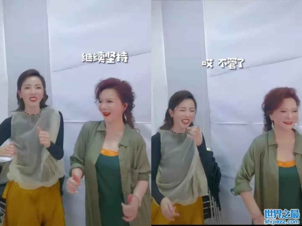 曝光的画面中,李思思与蔡明都身穿墨绿色的服装,打扮很是休闲。随着音乐的响起,两人跟随着律动跳起舞来,不仅姿势到位,眼神更是十分有戏。最初俩人还十分默契地跳齐舞,但不到一会就都搞错了方向,蔡明更是忍不住开始笑场,场面十分逗趣。