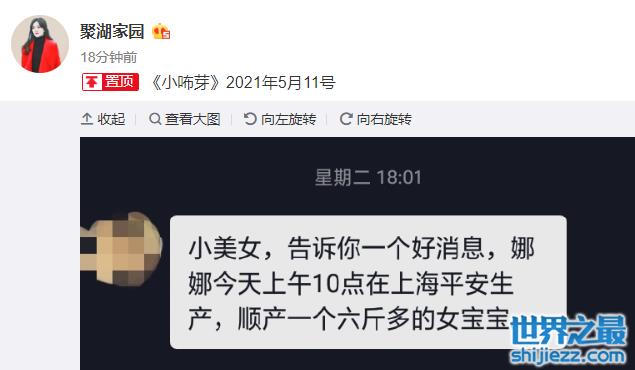 粉丝爆料谢娜在上海顺产“小咘芽”,母女俩生日相差5天,体重六斤多 ...