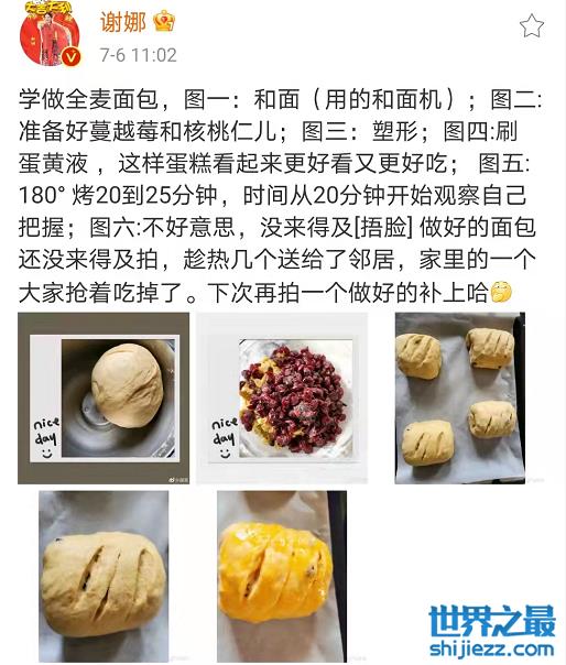 闲来无事,谢娜在家会烘焙,给家人做一些美食。