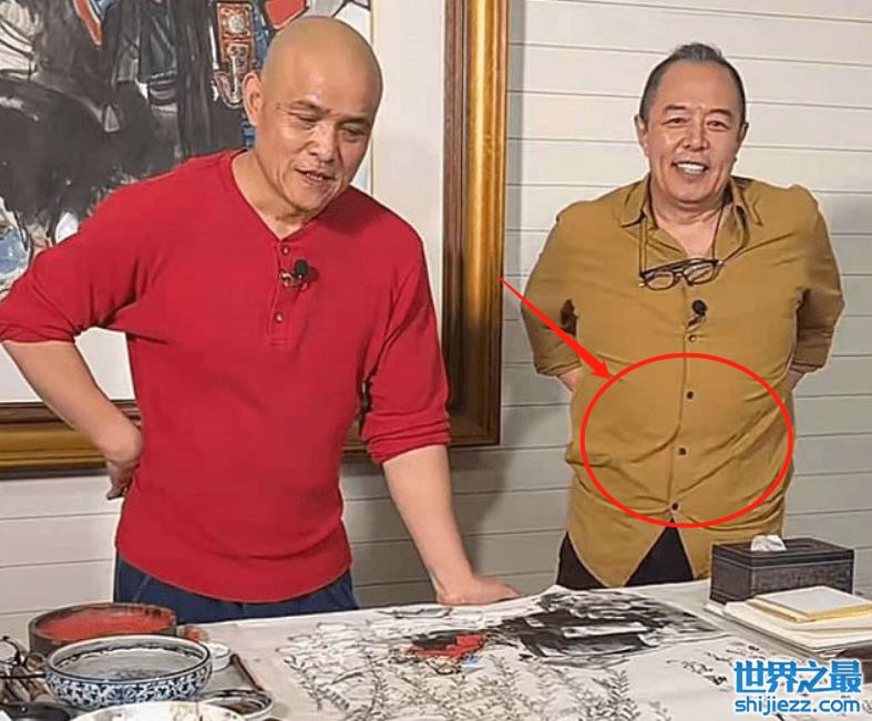 65岁张铁林为友人作画!肚腩突出衬衫松垮,戴老花镜头顶扎小辫 ...