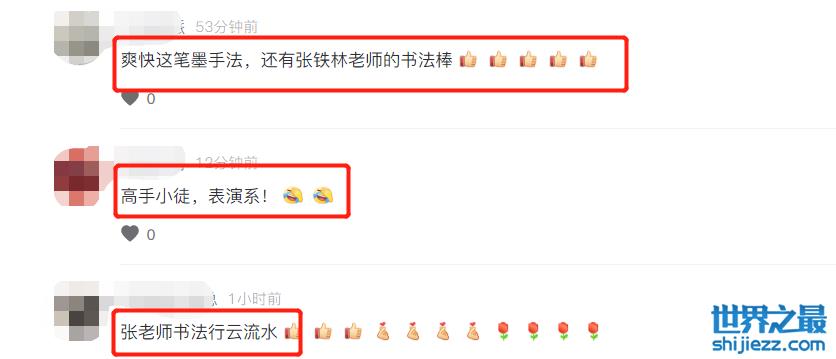对于俩人的合作,网友们也是纷纷议论。有的网友对俩人的合作表达了相当高的赞赏,认为张铁林的书法堪称行云流水。但也有网友认为,张铁林并没有过多真材实料,只是在表演得很专业。