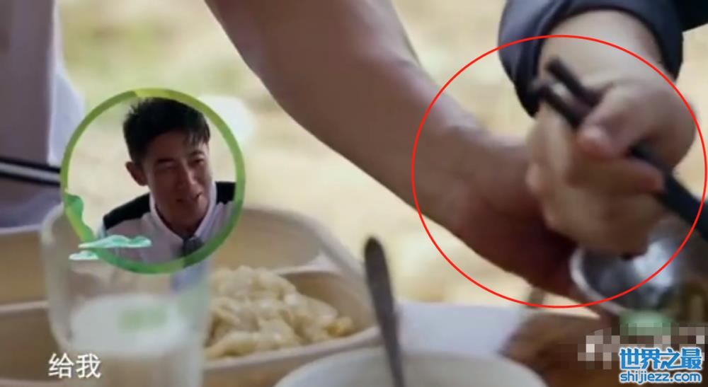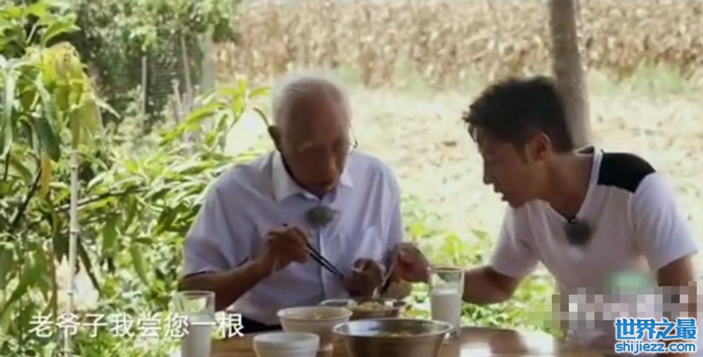 画面中,撒贝宁与一老者坐在田野边享受午餐,在询问老者的意见后,撒贝宁从老者的碗里挑了一根面条品尝,并建议老者不要再吃这碗面条,因为面条吃起来有点硬像是没有熟。