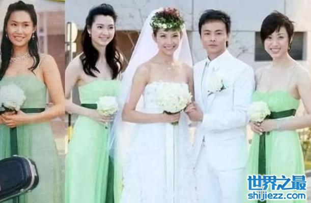 蔡少芬在08年与张晋举办婚礼时,身边陪伴她的也是陈法蓉、洪欣、朱茵这三个姐妹。