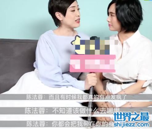 陈法蓉形容朱茵,“有时候我发疯了,不知道该做什么去哪里的时候,你都会把我带在你身边。”
