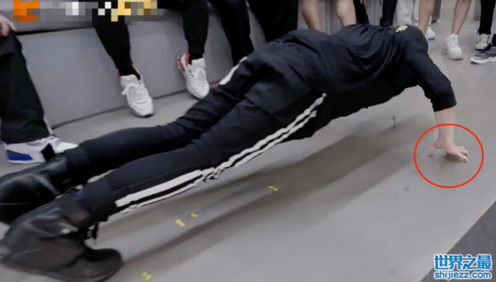 敖犬也亮出了自己的绝活,他将自己的腿盘起来,将脚掰到自己的大腿上,双脚离地双手支撑,用自己的屁股走路。速度十分之快。