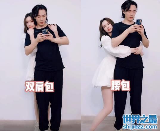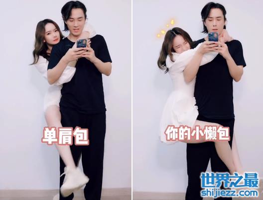视频里,戚薇把自己当成一个包包,李承铉则是挎包的人,她摆出各种包包被男生佩戴的姿势,画面生动有趣。比如提到双肩包,戚薇从后面环抱老公李承铉,头贴在其肩上一脸呆萌;比如腰包,戚薇紧抱李承铉的细腰,岔腿半蹲一脸无奈,一双白嫩美腿尽显无疑。