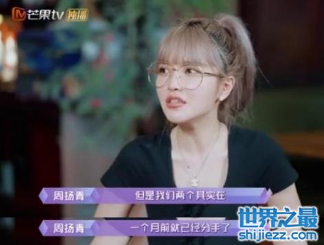 周扬青在《女儿们的恋爱》当中,与好利来太子罗昊和平分手。节目中说是和平分手退回朋友的位置,其实看过节目的人都知道,罗昊是对周扬青给他画脸感到过分,两人的性格和理念差异太大,因此分开也是迟早的事情,及时止损对于他们来说其实是一件好事。