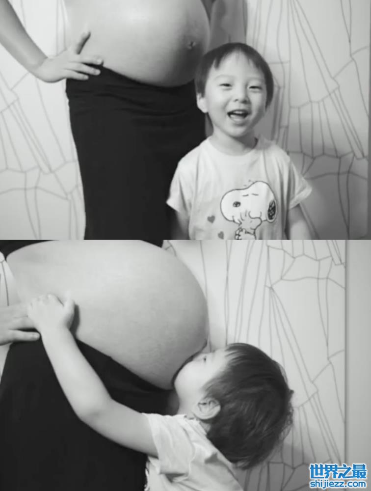 谢馨仪的大儿子更是罕见露面,只见他身穿卡通短袖上衣,头发已经留到脖子下方,笑起来的样子和妈妈谢馨仪一模一样,只见他抱着妈妈的孕肚,闭着眼睛亲了上去,对妈妈的肚子更是小心地呵护,看来他对这个即将来到世界的妹妹保有非常大的期待。