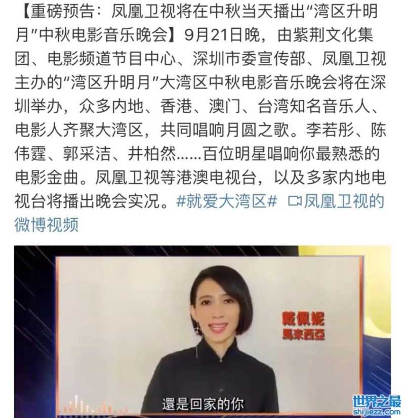 有流量明星的演出,也有实力派明星的加持,相信大湾区中秋晚会一定很是精彩,期待着大湾区中秋晚会给观众们带来精彩绝伦的表演。