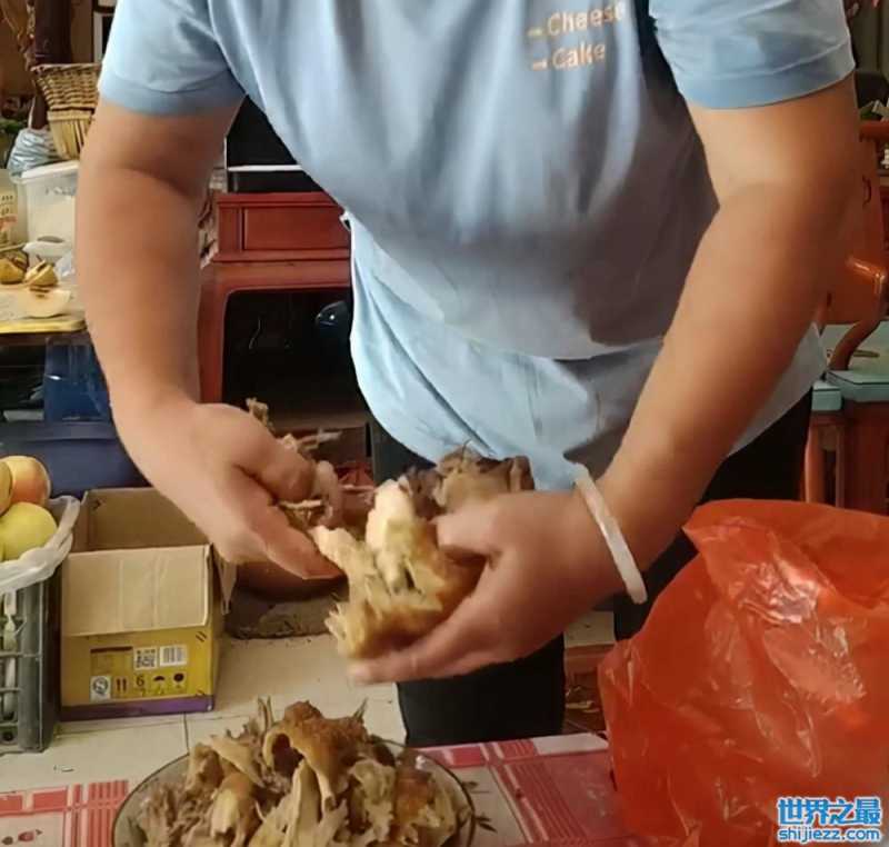 不过话说回来,大家都知道大衣嫂是一个非常随和的人,而且热情好客。仔细看她已经撕好的一盘子肉就知道了,她做事非常认真,所以不在乎她怎么撕,大家看到的是她与大衣哥热情好客的一面。