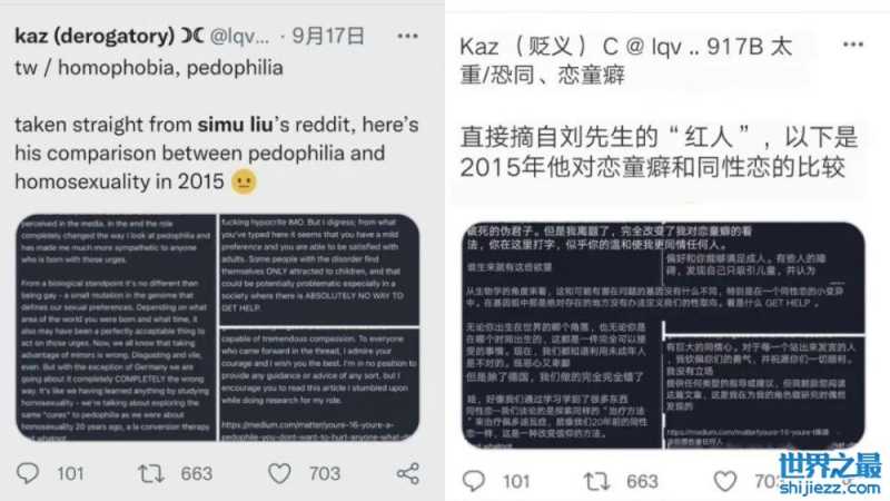 不过这并不是重点,重点是刘思慕接下来的话,他说自己非常同情同性恋和恋童癖,他说在生物学上,同性恋和恋童癖没有区别,只是基因突变而影响了性取向。而且和未成年人发生某种不好的事情在很多前并不是犯罪,犯罪的说法在他们西方国家也仅仅是在这两个世纪才有的!