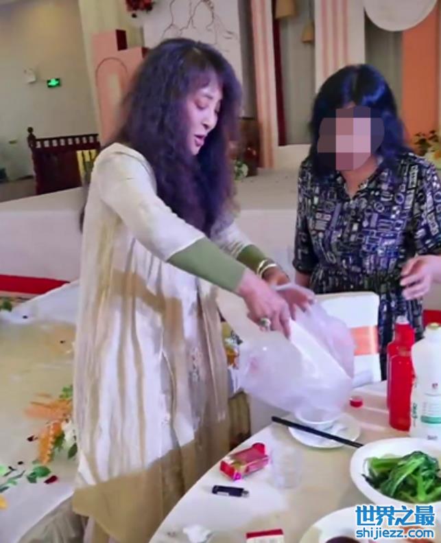 李勤勤化浓妆出席婚礼!戴超大珍珠项链显富贵,用塑料袋打包满桌剩菜 ...
