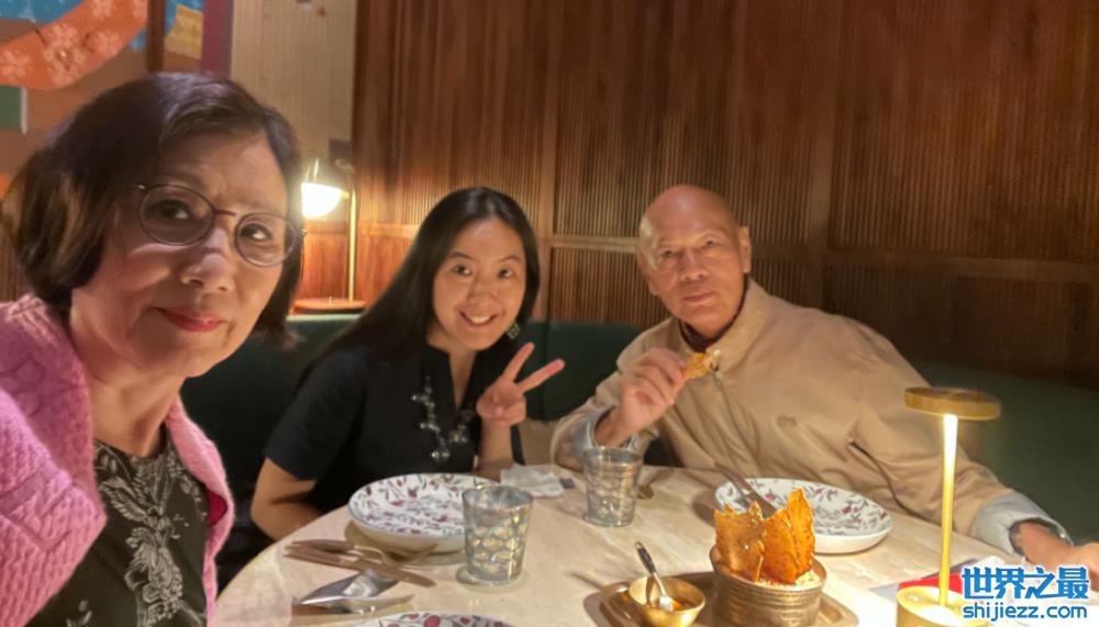 庆祝佳节必然少不了美食相辅,两口子还一块品尝泰国菜,与小年轻聚餐生活无比滋润,合照时罗家英手里还拿着未吃完的食物,汪明荃则满脸笑意,不难看出这个节日二人相伴过得很是开心愉悦。