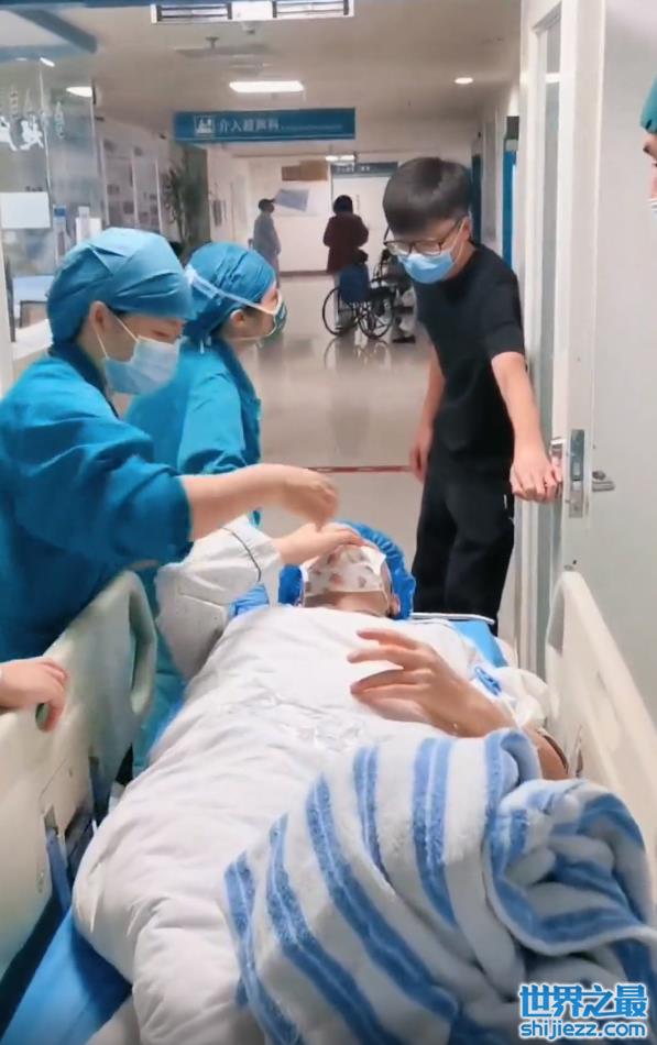 视频中,现年46岁的主持人李彬穿着病号服躺在病床上,身边有几名医护人员正推着他的病床移动,疑似准备做检查,看起来状况不太好。