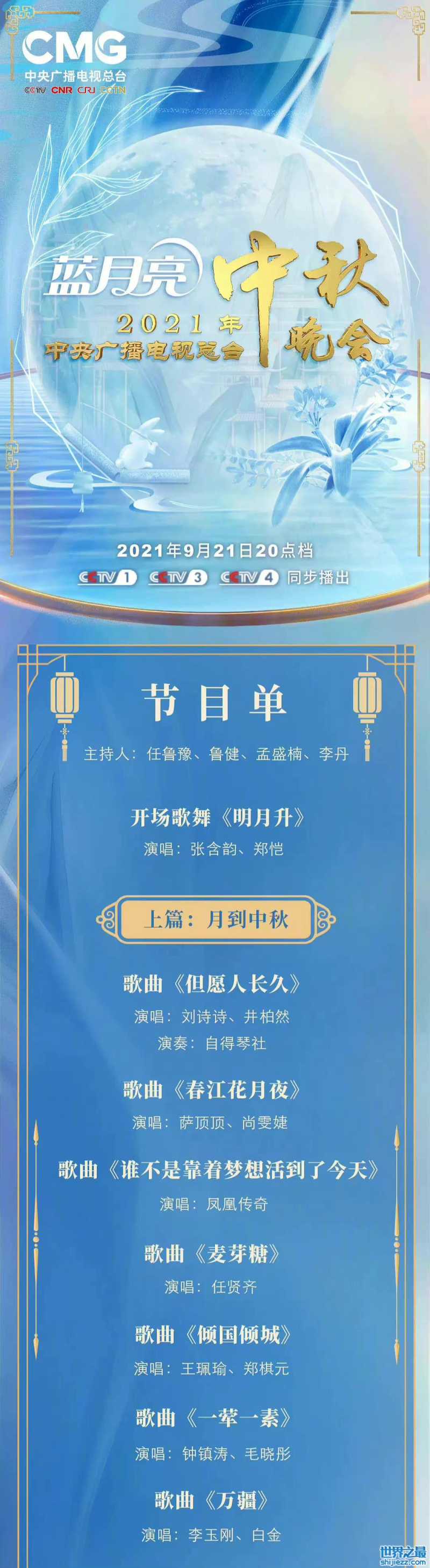 今年晚会邀请的都是在音乐领域、电影电视领域等有着不错口碑的艺人们,而有的实力派明星还一人参加了多台晚会。例如李宇春和周深成了各家的香饽饽,周深参加了3台中秋晚会,都将带来精彩的歌曲演绎。