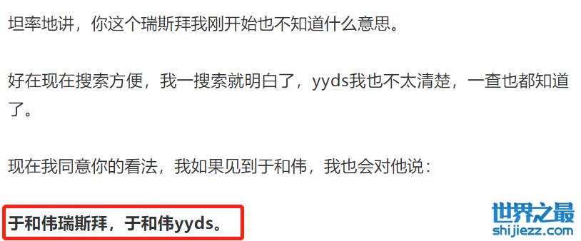 聊到最后,莫言还在回答问题的时候,用自己新学的流行语,安利了他最近看过的电视剧《觉醒年代》:于和伟瑞思拜,于和伟yyds。