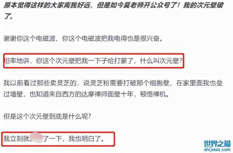 在面对网友说的次元壁破了的评论,莫言先是调侃了一下他的网名,然后又特别认真地检索了次元壁的含义,