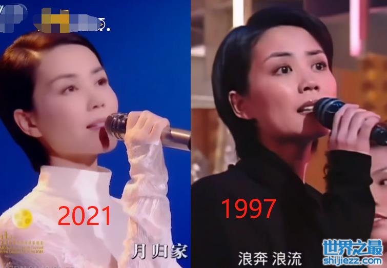 因为王菲的发型实在是过于利落经典,网上立刻就有网友扒出了她在1997年时的类似造型,除了身上穿着的服装不同以外,王菲整个人看起来跟24年前几乎没有一点区别,甚至连皮肤都是同样的细腻紧致,