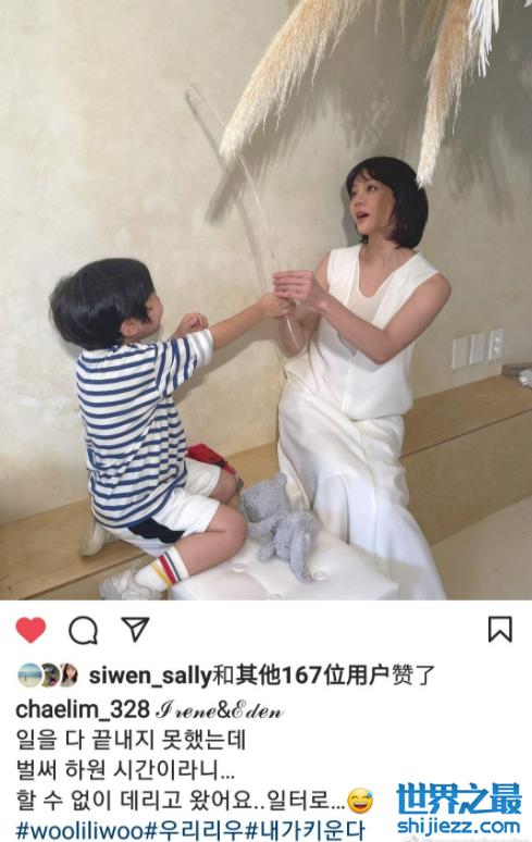 平时蔡琳工作无法准时结束也会把民宇带到身边,一边工作一边照顾儿子。