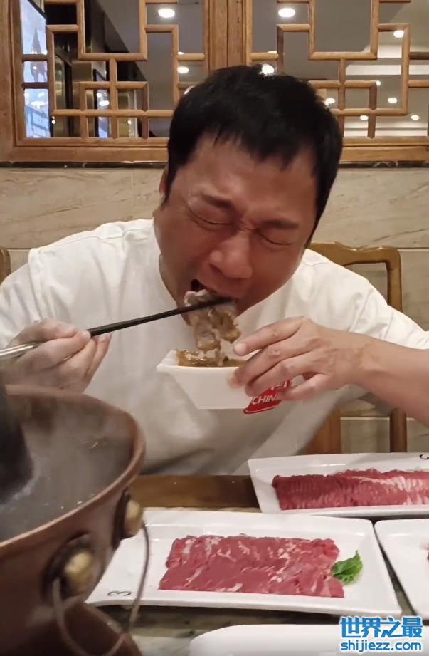 只见黎耀祥夹起铜锅里的肉,沾满酱料后一口就塞进了嘴里,丝毫不怕烫,只顾着大快朵颐,一脸享受满足的表情。