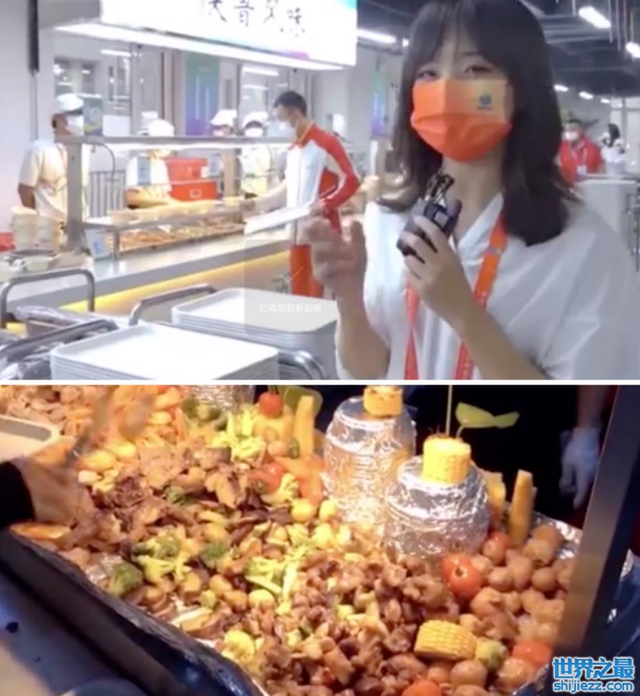 王冰冰先是来到了全运村的食堂,可以看出食堂里面的饭菜非常丰富,牛排、大虾等高蛋白质食物也是成堆供应。为了照顾运动员们的口味,食堂内更是各地的食物都有,可以看出全运村准备得非常贴心。