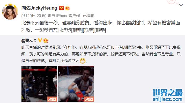 由于向佐的突然退赛,曹云金这次不用和他对打了,不知道他心中是庆幸还是会觉得遗憾呢?难道他真的对自己的打拳实力很自信,认为自己完全可以打败向佐吗?