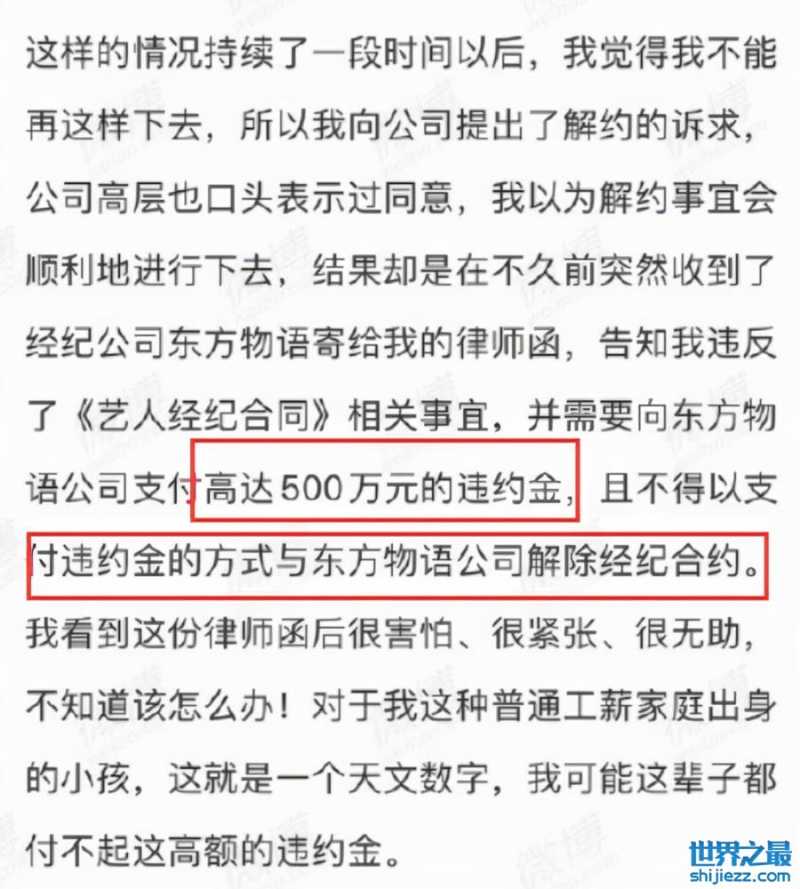 想解约?可以,天价违约金在等着你。而不少经纪公司赚的就是解约的钱,有的人能够支付得起就获得了自由身,公司就赚到了,而有的人赔付不起,只能耗着,连打官司都打不起。