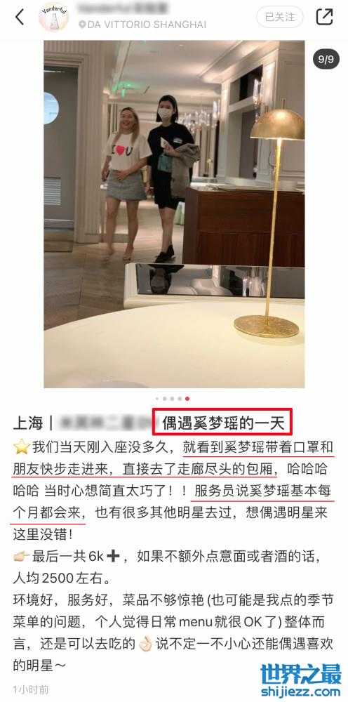 9月26日,有网友晒出近日偶遇到奚梦瑶与朋友一起吃饭的动态,该网友直言,她们当日刚入座没多久,就看到奚梦瑶带着口罩和朋友快步走进来,而后直接去了走廊尽头的包厢,随后该网友询问服务员得知奚梦瑶基本每个月都会来,是这家店的常客。