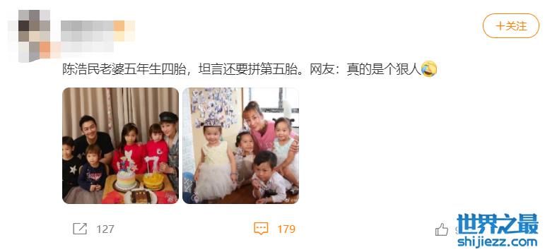 不过,在娱乐圈中这种迷惑事件不在少数,演员陈浩民与妻子蒋丽莎结婚后,蒋丽莎在婚后5年剖腹产生下4胎,此外,蒋丽莎在接受采访时还表示想要再拼五胎,引发网友的热议,有人说她像个生育工具,有人说她对自己真狠。